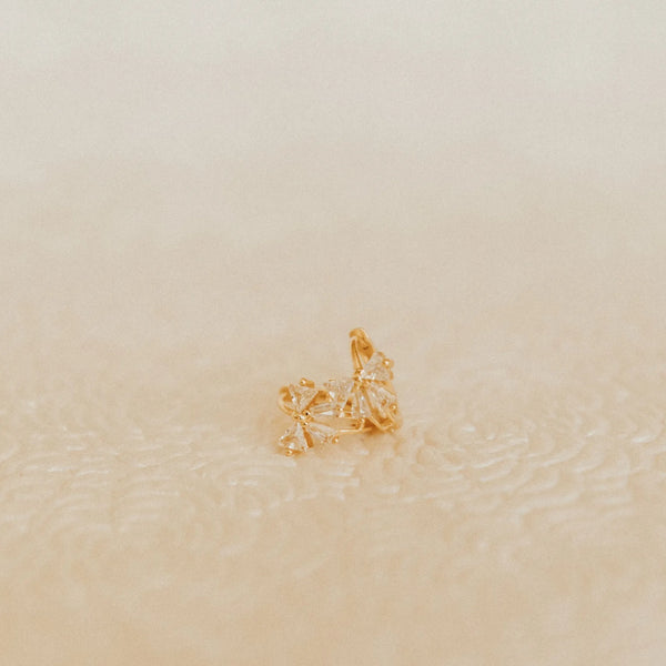 These Lucy Diamond Bow Hoops are the perfect accessory to complete any outfit. They are sterling silver based gold vermeil and are hypoallergenic, tarnish and wear resistant, and perfect for sensitive ears. They measure a dainty 10mm and are perfect for a first piercing or in an earring stack.